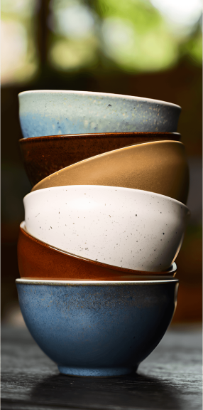 Виробництво керамічних кухлів, тарілок, ваз різних форм та літражів, Кольори глазурі підбираються індивідуально під конкретне замовлення. Продукція придатна до деколювання до 1200°С.